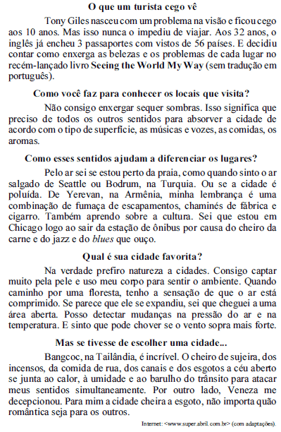 De acuerdo con el texto de arriba, juzgue los siguientes ítems.
