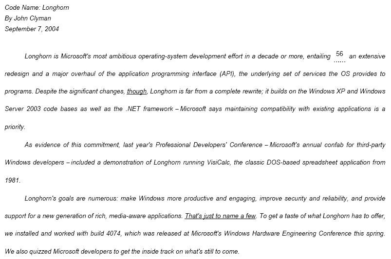 Em relação ao Longhorn, o autor do texto