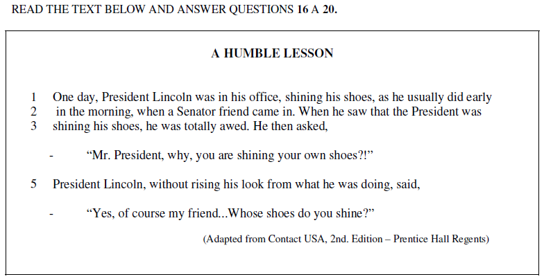 FOR QUESTIONS 21 A 38, CHOOSE THE ALTERNATIVE THAT BEST COMPLETES EACH SENTENCE OR DIALOG, BOTH IN GRAMMAR AND USE OF THE LANGUAGE: