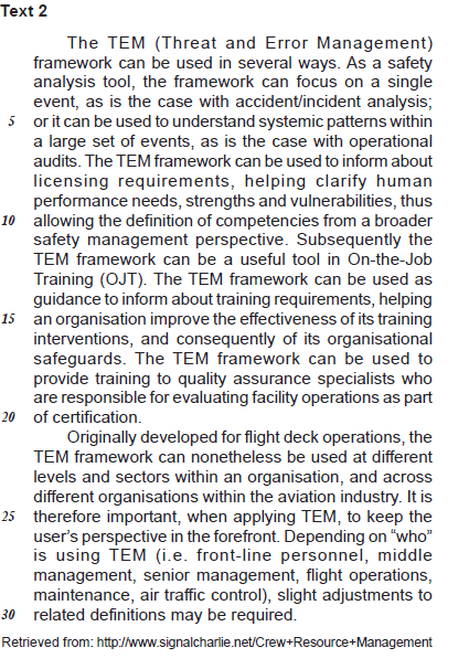 "Originally developed for flight deck operations, the TEM framework can nonetheless be used at different levels and sectors within an organisation," (lines 21-23)