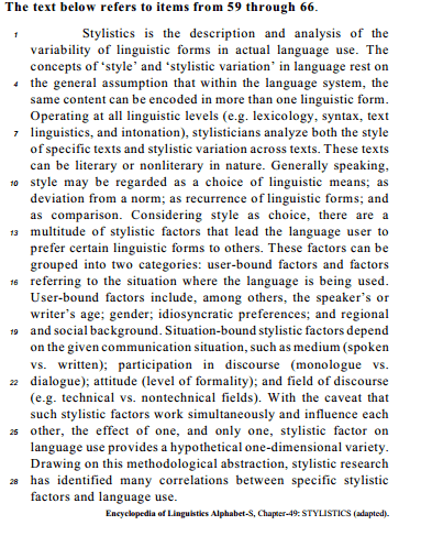 Stylistics is the description and analysis of the variability of linguistic forms in actual language use.(L.1-2) A Estilística consiste na descrição e análise das variações das formas linguísticas em uso corrente na língua.