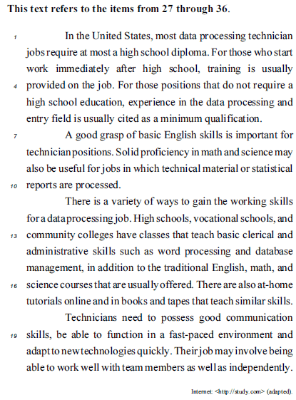 Data processing technician jobs demand at least a high school diploma.Língua Inglesa - Interpretação de Texto - Centro de Seleção e de Promoção de Eventos UnB (CESPE) - 2015