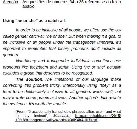Atenção: As questões de números 47 a 70 referem-se a conhecimentos linguísticos da língua inglesa.