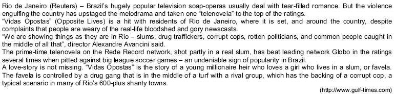 Violence is growing in Brazil because of the violence presented on TV series.