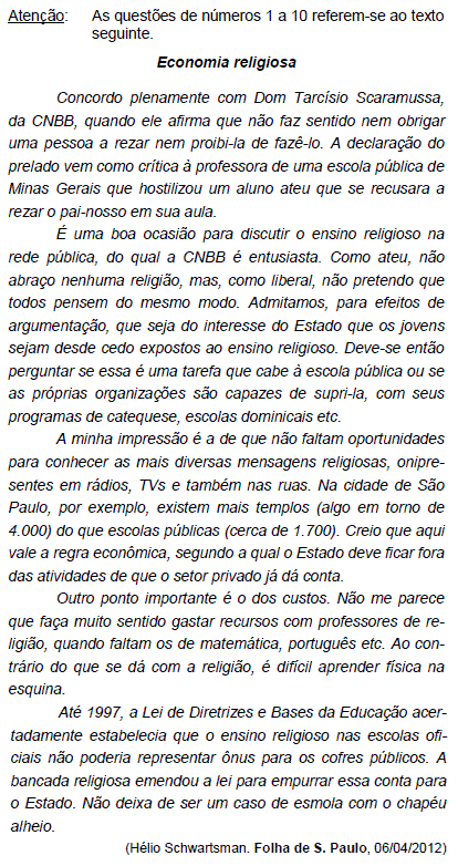 Atenção: As questões de números 1 a 10 referem-se ao texto abaixo.