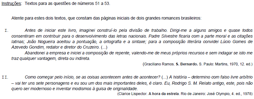 S. Bernardo e A hora da estrela os dois romances a que pertencem esses textos são exemplos, respectivamente,