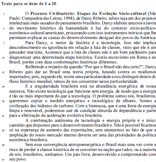 LEIA O TEXTO A SEGUIR PARA RESPONDER ÀS QUESTÕES NUMERADAS DE 01 A 07.
