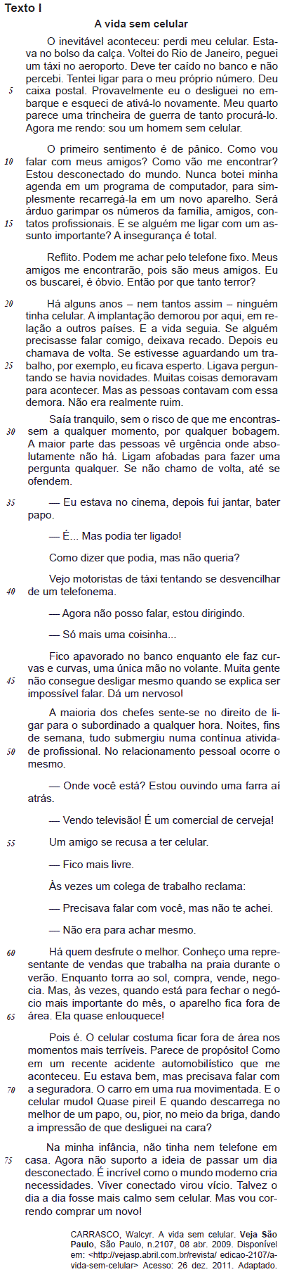 O inevitável aconteceu: perdi meu celular. (l. 1)