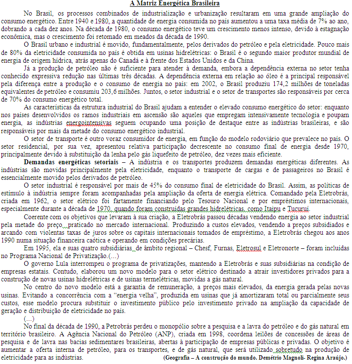 Em "... esse modelo procura substituir o investimento público..." (11º§), a expressão esse modelo se refere à concorrência com a energia velha.