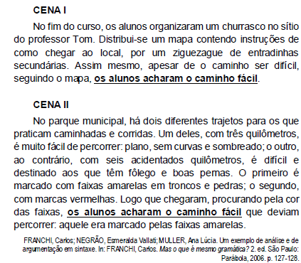 II. Na cena II, o vocábulo fácil especifica o caminho que foi encontrado pelos alunos e corresponde a: Os alunos encontraram o caminho fácil.