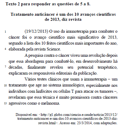 Considerando o trecho Vários testes clínicos que usam a imunoterapia (linha 9), assinale a alternativa que apresenta a classificação da oração introduzida pelo termo sublinhado.