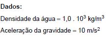 Um tambor cilíndrico, de raio 40 cm e de altura 1,0 m, está cheio de óleo e flutua verticalmente num tanque com água, ficando com 75% de seu volume imerso. A pressão exercida pela água na base inferior desse tambor e a massa do tambor com óleo, em unidades do Sistema Internacional são, respectivamente,