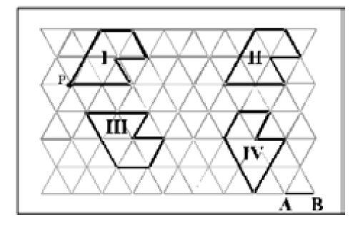 O polígono IV é obtido como imagem do polígono I por meio de uma rotação de 60º, no sentido anti-horário em torno do ponto P, seguido de uma translação determinada por um vetor que faz um ângulo de 60º com o segmento AB.