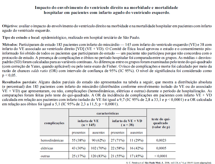 Conforme os dados da tabela, as complicações elétricas são, quanto à significância estatística, mais freqüentes no grupo com infarto isolado do VE do que no grupo em que há acometimento do VD.