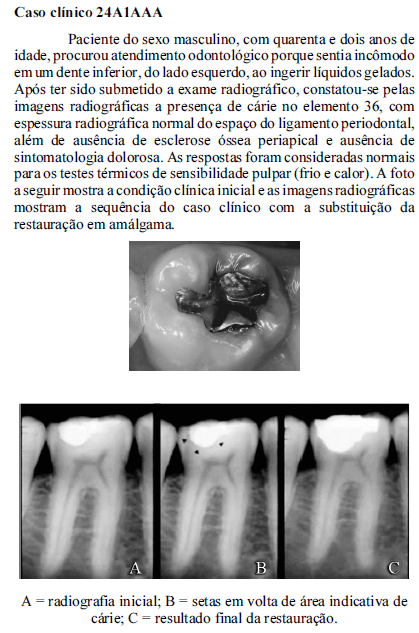Com referência ao caso clínico precedente e aos conceitos fundamentais de odontologia, julgue os itens a seguir.