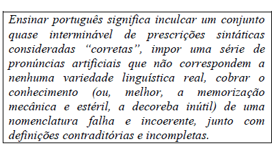 De acordo com Bagno (2004), os professores brasileiros possuem duas opções em termos de ensinar ensinar o português ou estudar o brasileiro. Abaixo, há a exposição de um excerto com um desses posicionamentos. A partir da interpretação adequada dele abaixo, marque a alternativa em discordância a esse posicionamento.