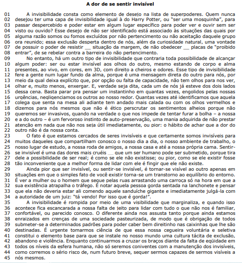 (Disponível em https://www.contioutra.com/a-dor-de-se-sentir-invisivel/ Texto adaptado especialmente para esta prova.)