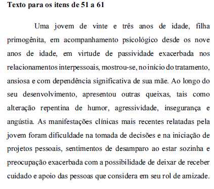 Nesse caso, a dificuldade na tomada de decisões e na iniciação de projetos e a preocupação significativa de ser abandonada caracterizam transtorno de personalidade dependente.{TITLE}