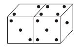 Em um dado convencional os pontos que correspondem aos números de 1 a 6 são colocados nas faces de um cubo, de tal maneira que a soma dos pontos que ficam em cada par de faces opostas é sempre igual a sete. Considere que a figura seguinte indica dois dados convencionais, e que suas faces em contato não possuem quantidades de pontos iguais.