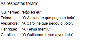 A avó, sabendo que uma pessoa estava mentindo e que as outras estavam falando a verdade, pôde concluir que quem tinha pegado seu pedaço de bolo foi