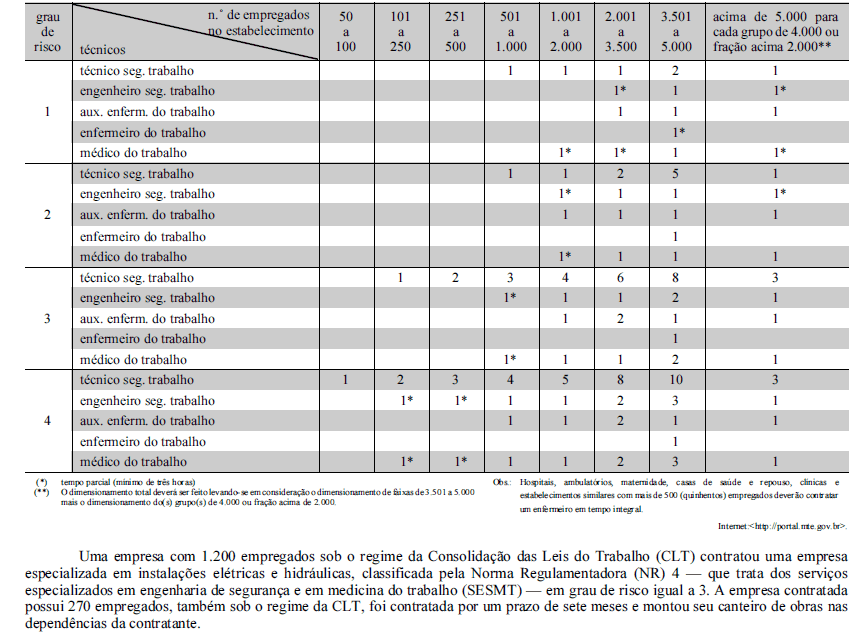 Segurança e Saúde no Trabalho (Teoria e Normas) - NR 04 - Serviços Especializados em Eng. de Segurança e em Medicina do Trabalho - Centro de Seleção e de Promoção de Eventos UnB (CESPE) - 2011
