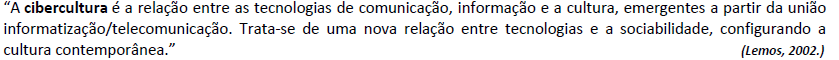 ( ) Trata‐se da ampliação de formas de conexão entre homens e homens, máquinas e homens e máquinas e máquinas motivadas pelo nomadismo tecnológico da cultura contemporânea e pelo desenvolvimento da computação.